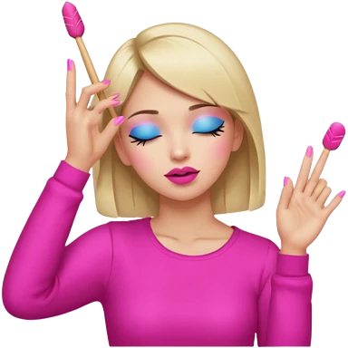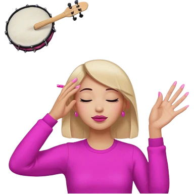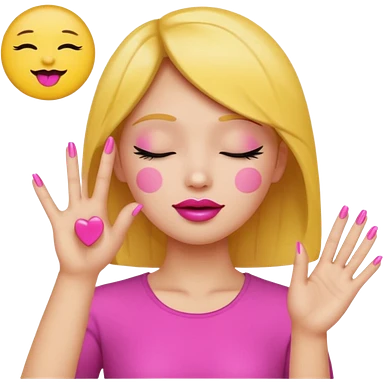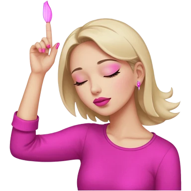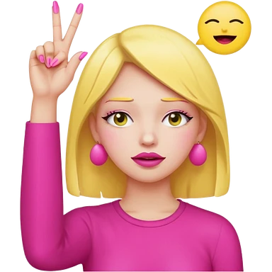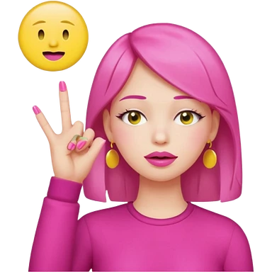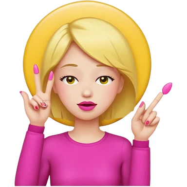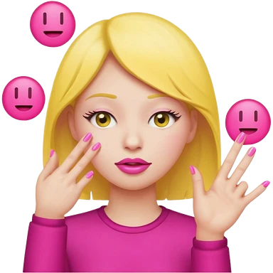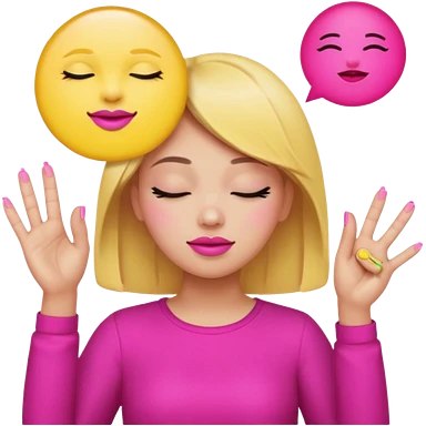 Yellow circle emoji exasperated and drumming fingers up the side of their head the eye is closed it is a side profile pink lipstick and pink nails emoji