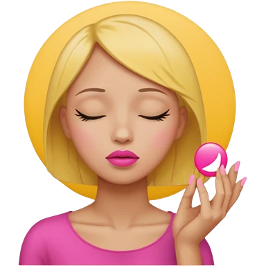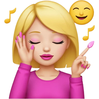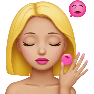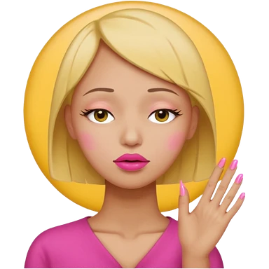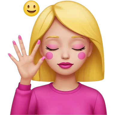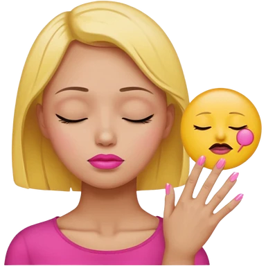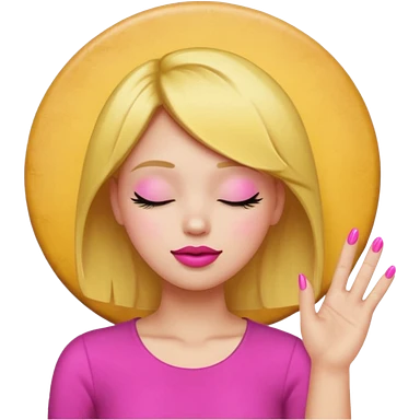 Yellow circle emoji sighing and drumming fingers up the side of their head the eye is closed it is a side profile pink lipstick and pink nails emoji