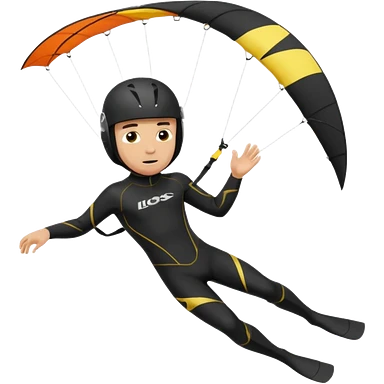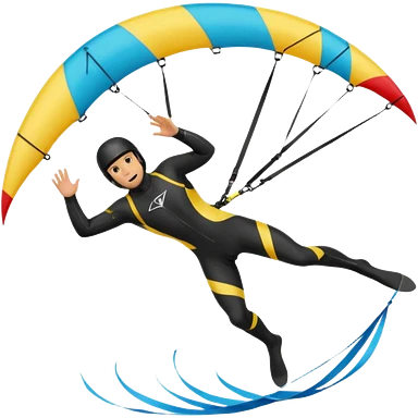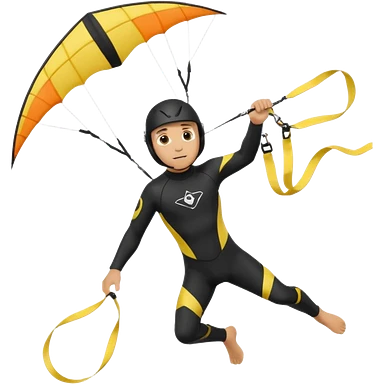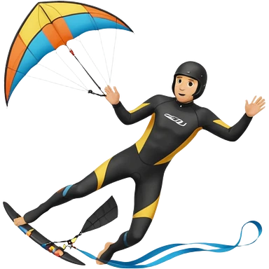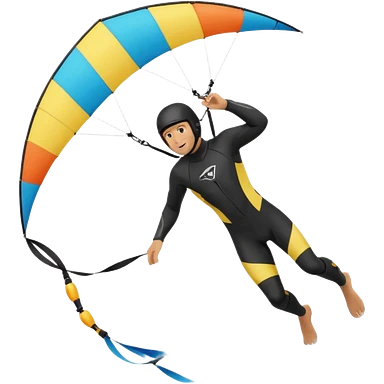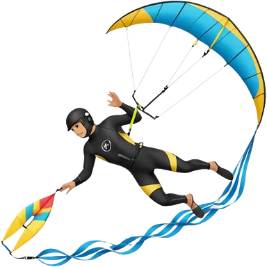 Kiterman, caucasico traje neopreno negro y casco negro, haciendo un down loop con la cometa emoji