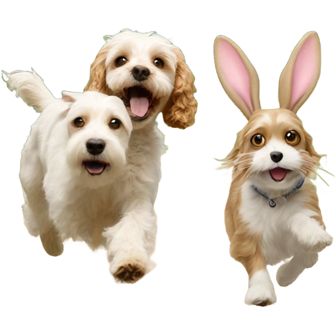 Cavapoo chasing bunny emoji | AI Emoji Generator