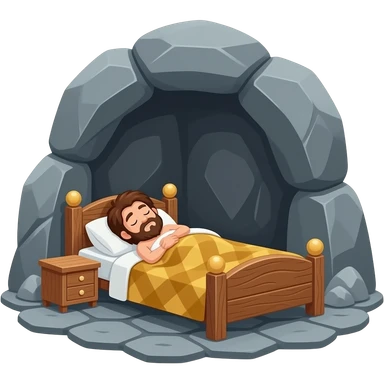 Caveman sleeping in rock ground in the stone age bedroom cave emoji