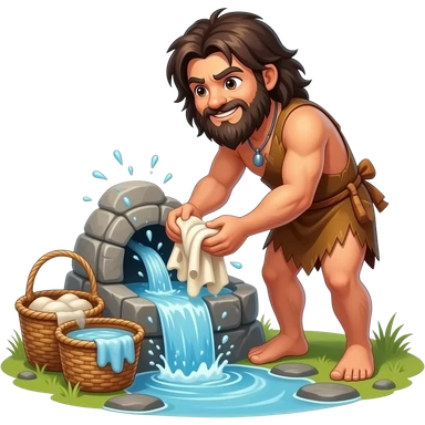 Caveman river rinse caveman animal hide clothes in the stone age washing machine emoji