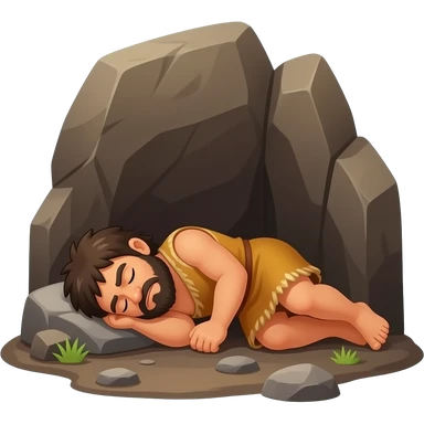 Caveman sleeping in rock ground in the stone age bed cave emoji