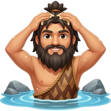 Caveman Bath the hair and body in the stone age bathroom emoji | AI Emoji Generator
