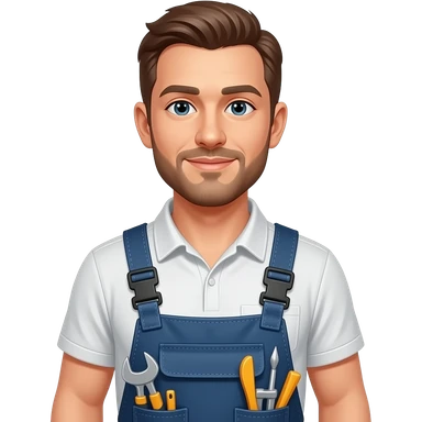 Guy with brown hair and blue eyes wearing a toolbelt emoji