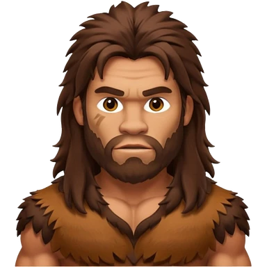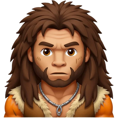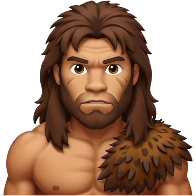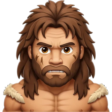 caveman with a long jawline, butt chin, brown hair, slight unibrow, brown eyes, and tan skin emoji