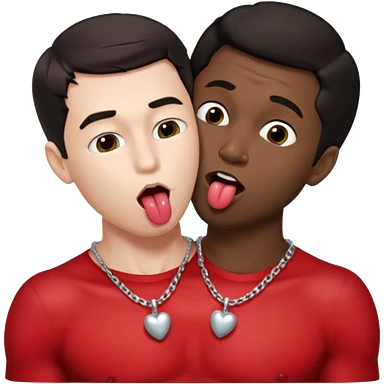 1 White adult male dark hair ,1 black adult male silver necklace, nude,kissing tongue open mouth emoji
