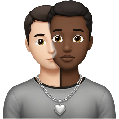 1 White adult male dark hair ,1 black adult male silver necklace, nude,kissing tongue emoji