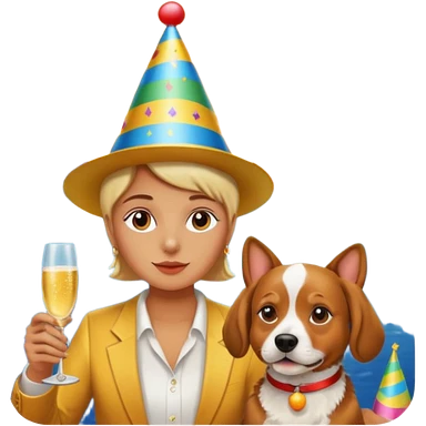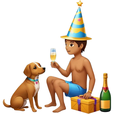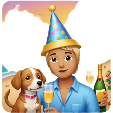 celebration birthday with a dog and watching sunset with many peoples with a birthday cake and mike a wish man peoples at home emoji | AI Emoji Generator