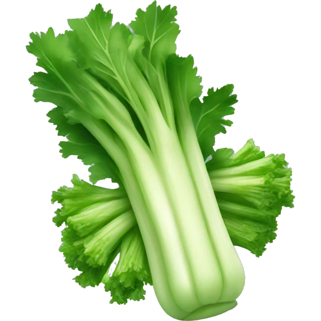 A fresh celery stalk, green and crisp, with its long, fibrous stems and leafy tops. It’s often used in cooking or as a crunchy snack emoji