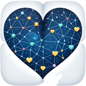 Celestial folded map with constellation heart patterns connecting like stars, cosmic exploration of love and attraction emoji | AI Emoji Generator
