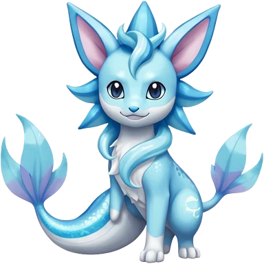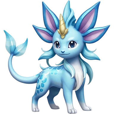 Magical pastel sparkly shiny glittery Suicune-Vaporeon-Primarina-Amaura-Pokémon-Fakémon-fusion, full body emoji