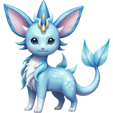 Magical pastel divine royal wealthy realistic beautiful pretty shiny glittery Suicune-Vaporeon-Primarina-Amaura-Pokémon-Fakémon-fusion, full body emoji