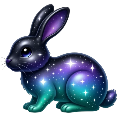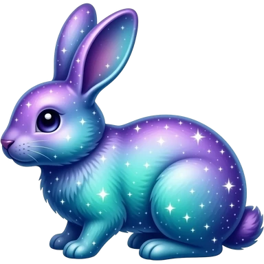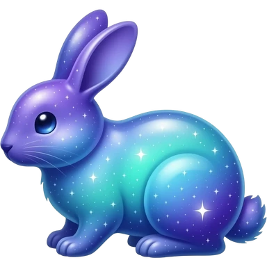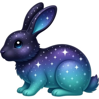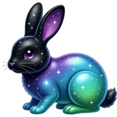 Celestial bunny, black-purple-blue-cyan-green-gradient shimmering shiny galactical starry sparkling, full body emoji
