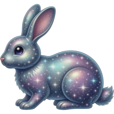 Celestial bunny, shimmering shiny galactical starry sparkling, full body emoji