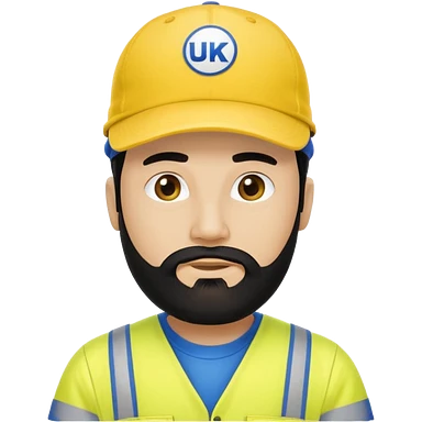 Man in yellow hi vis overalls, with black hair and full beard, with blue baseball cap saying ukpn emoji