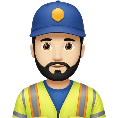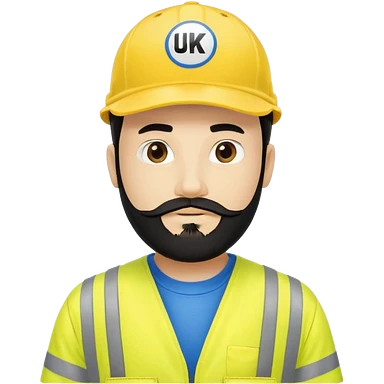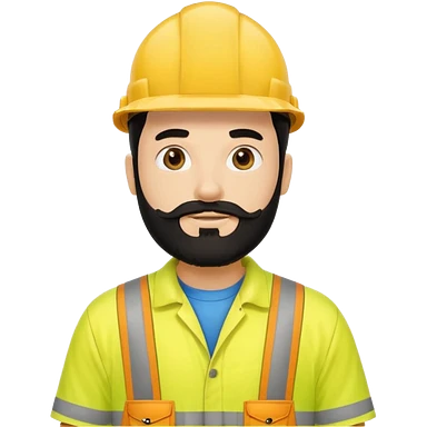 Man in yellow hi vis overalls, with black hair and full beard emoji