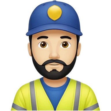 Man in yellow hi vis overalls, with black hair and full beard, wearing a dark blue baseball cap emoji