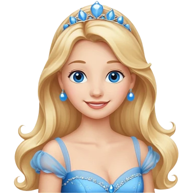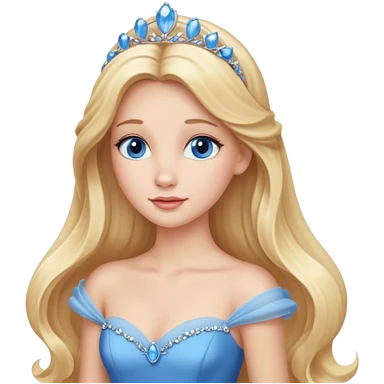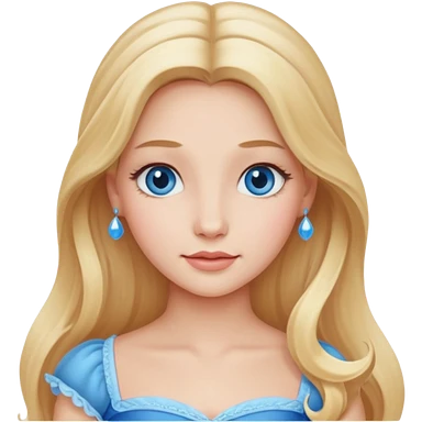 cendrillon on voit juste le buste elle est blonde avec les cheveux releve et un serre tete bleu ciel et elle porte une robe de soirée bleu ciel emoji