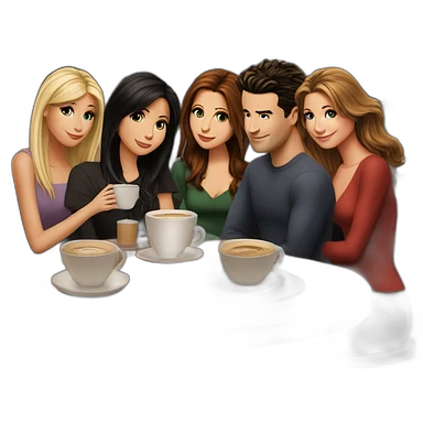 Ross, Rachel, Monica, Chandler, Joey, and Phoebe, all gathered for a coffee at Central Perk emoji