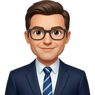 Thin white man, short white hair, black thin square glasses, white shirt, blue eyes, ceo emoji