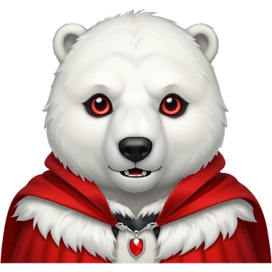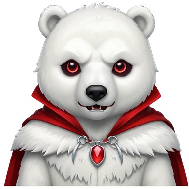 Vampire animal, polar bear in red collar cloak, red eye, fang emoji