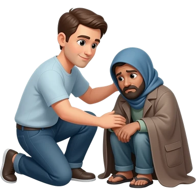 señor ajudando a persona pobre emoji