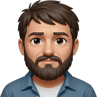 Hazme un hombre moreno con poco pelo en la parte centrar de la cabeza justo 3 pelos con barba pobre y ojos marrones emoji