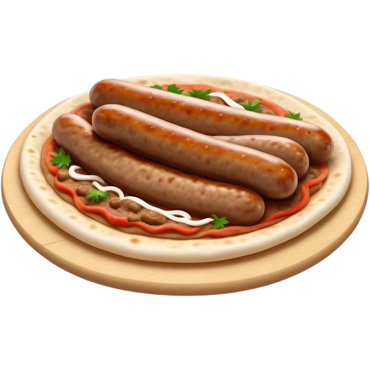 Cevapi Cinematic Realistic Cevapi Dish Emoji, depicted as modest, short, skinless sausages served with traditional flat bread, rendered with realistic textures and rustic, inviting lighting. emoji | AI Emoji Generator