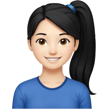 cewe rambut panjang hitam dikuncir ceria keliatan setengah badan dan badannya kayak lagi nyender ke sesuatu gitu emoji