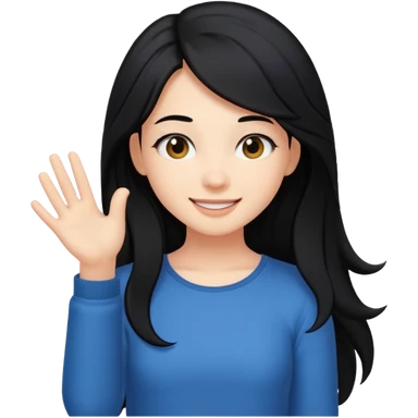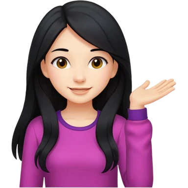 cewe rambut panjang hitam ceria keliatan setengah badan dan badannya kayak lagi nyender ke sesuatu di sebelahnya emoji