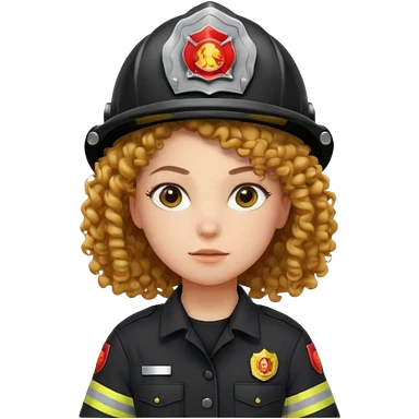Firefighter girl curly hair with Black uniform emoji
