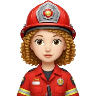 Firefighter girl curly hair with red uniform emoji
