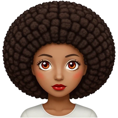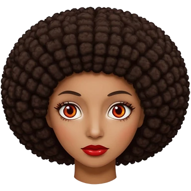 change her hair to a dark brown afro, dark brown eyes, and make the eye whites red emoji