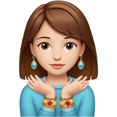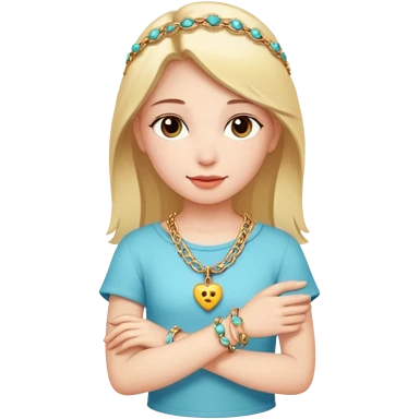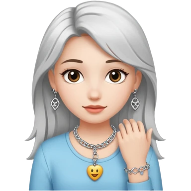 Character: Go-getter, confident, intelligent, composed Emoji Look: Light gray eyes, very noticeable Well-shaped eyebrows, strong appearance Upper ponytail Street fashion look Fair skin with a pink undertone Arms crossed pose Feeling: Girl Boss, cool beauty, minimal but powerful emoji