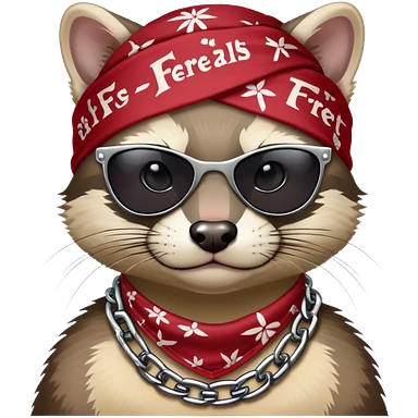 gangster-style animal duo featuring a tough-looking ferret and a wildcat rocking shades, bandanas, and chains. They’ve got serious street cred and attitude, with the bold name ‘FERREALS’ stamped below like a crew name. It’s like the animal kingdom’s version of a hip-hop duo or biker gang emoji