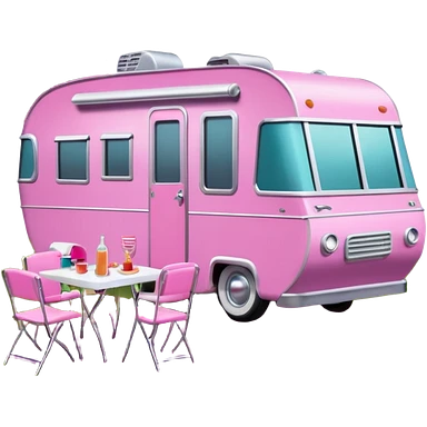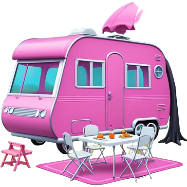 Jetson’s Ultra hotrod Haunted Barbie dream house Caravan with picnic table and folding chairs on top emoji