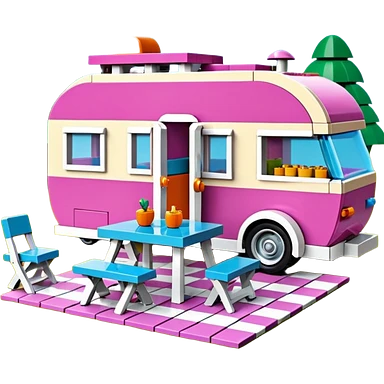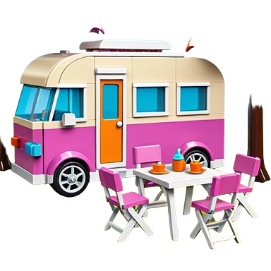 Jetson’s Ultra hotrod cute Lego Haunted Barbie dream house Caravan with picnic table and folding chairs on top emoji
