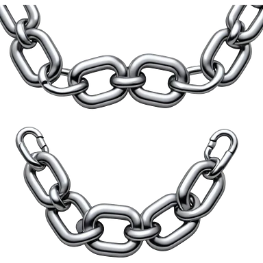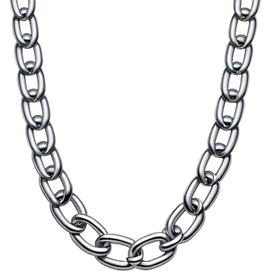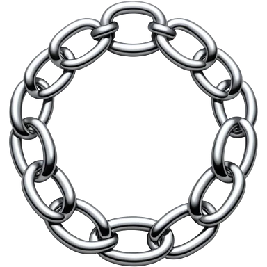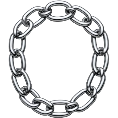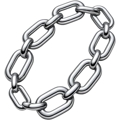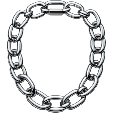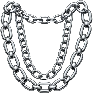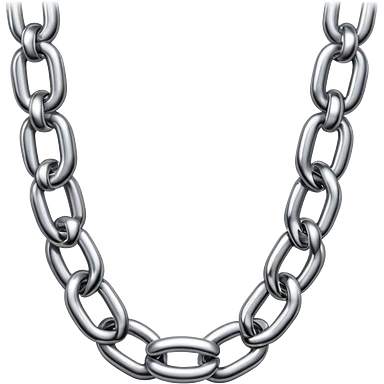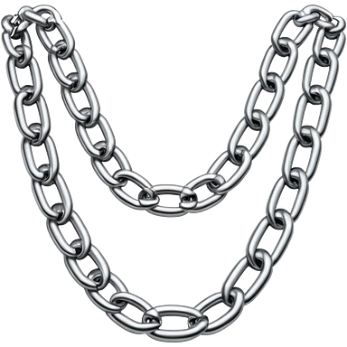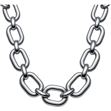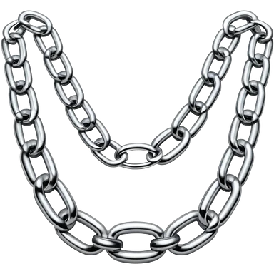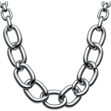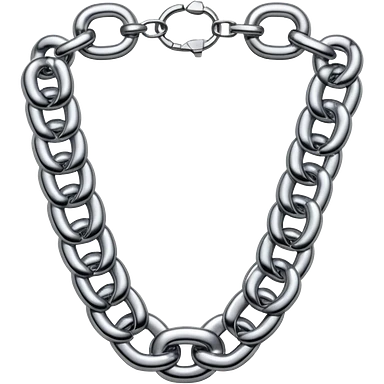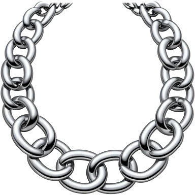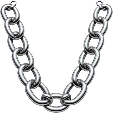 A thick luxury chain emoji made of liquid silver chrome, smooth rounded links, glossy metallic reflections, heavy swag aesthetic, minimalistic iOS emoji style, centered, clean white background emoji