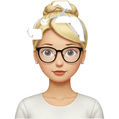 Blonde Women with Bun, Office Woman – tight blonde high bun, glasses, white blouse, confident look. emoji
