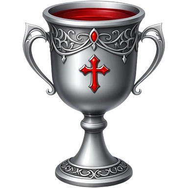 Silver chalice with a detailed and decorated outside in silver and red jewels emoji