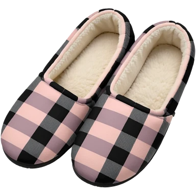 Blush pink, Dark Gray and black plaid print women's slippers emoji