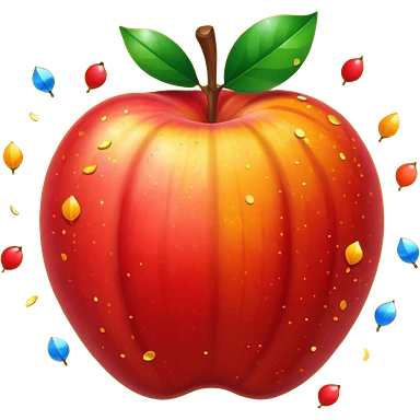 Una manzana roja con naranja con rayos que explotan y llena de confeti emoji