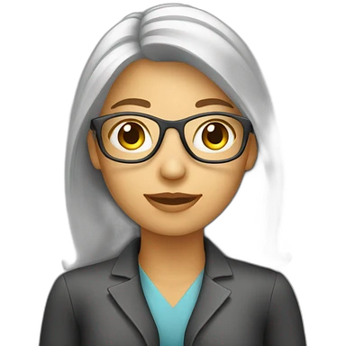 A female researcher in her 20s wearing a gown. Her hair is black short and her skin is white. She is pointing at a blackboard emoji