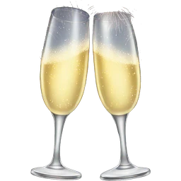 Realistic glam bottle of champagne with a glass next to with a lit sparkler firework in the glass with it emoji