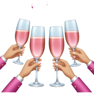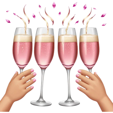champagne glasses with pink champagne giving cheers with two hands with five fingers emoji | AI Emoji Generator