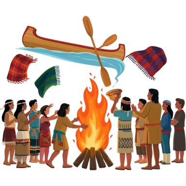 Potlatch ceremonies often began as a feast and culminated in a fire, sometimes with the outright destruction of property, like tossing blankets into a fire, breaking canoes, or throwing heirloom coppers into the ocean. emoji