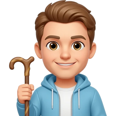 Change the hair to light brown and put a walking stick in the left hand emoji