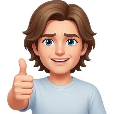 change to slightly longer and lighter brown hair. have her giving a thumbs up and look nervous and happy emoji