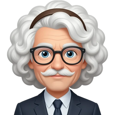 change this professor into heavy curly white hairs with head band and wear glasses emoji